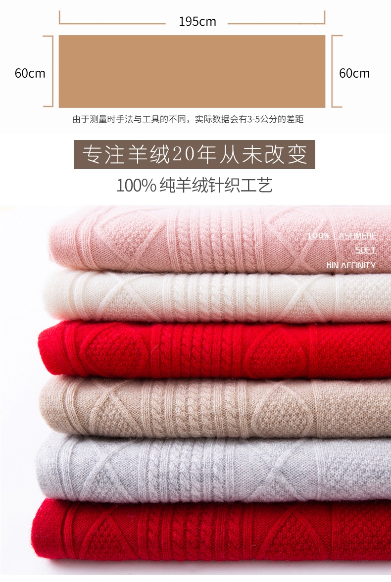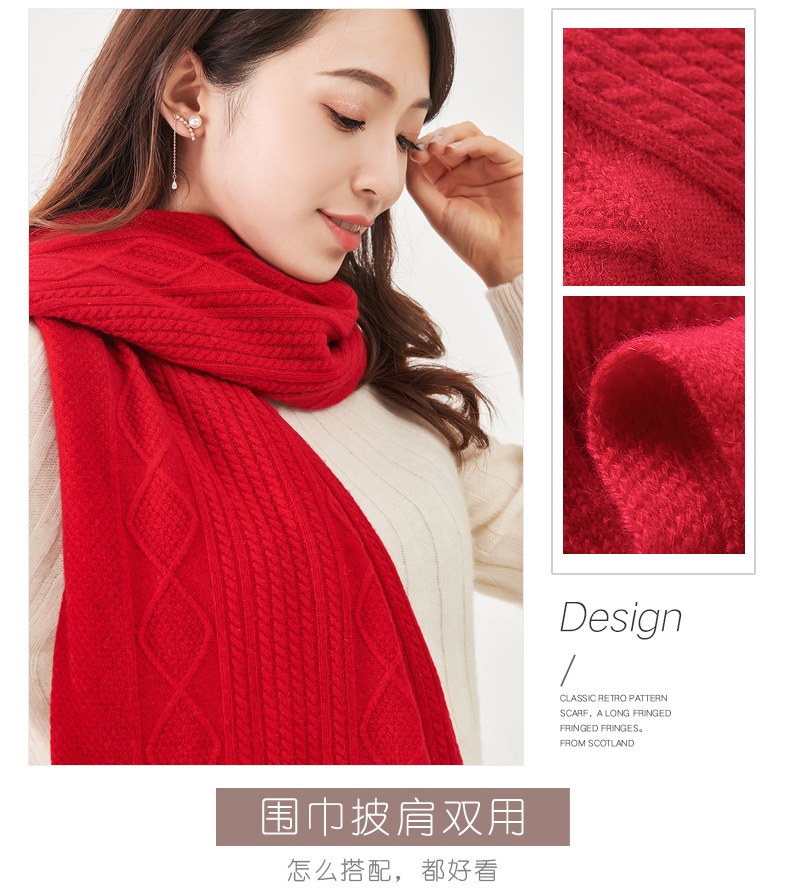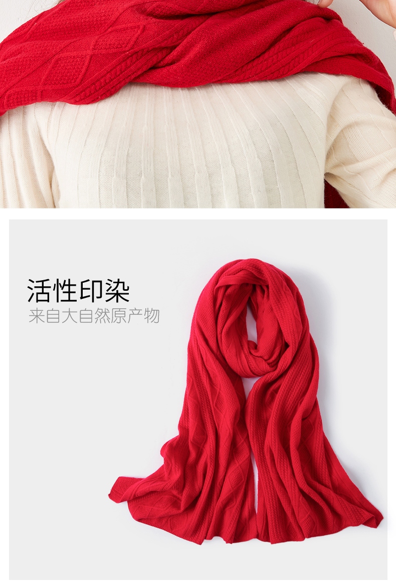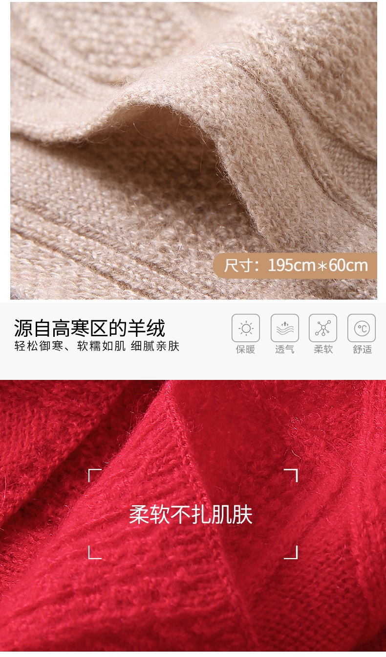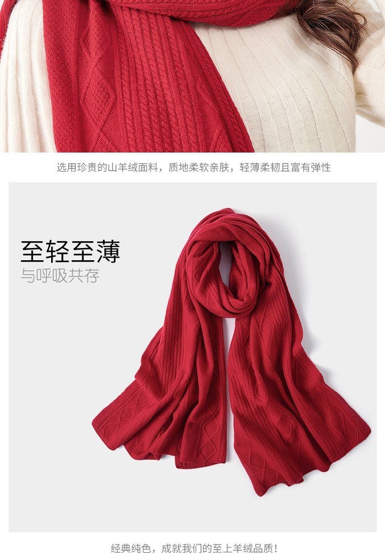 纯色山羊绒围巾女冬季本命年大红羊绒针织围巾披肩加厚保暖围脖