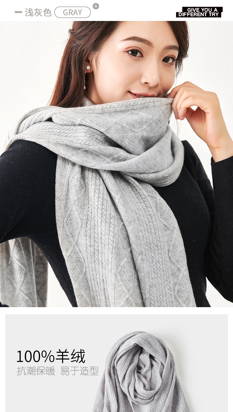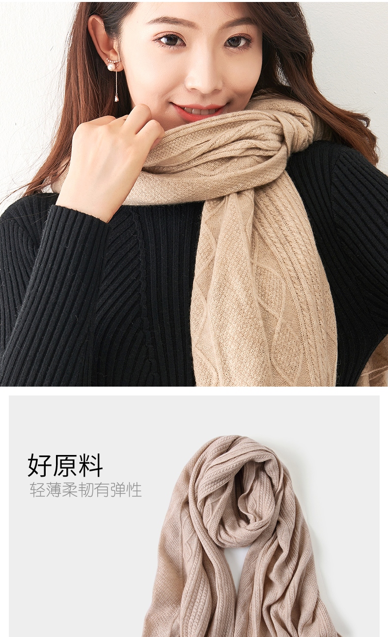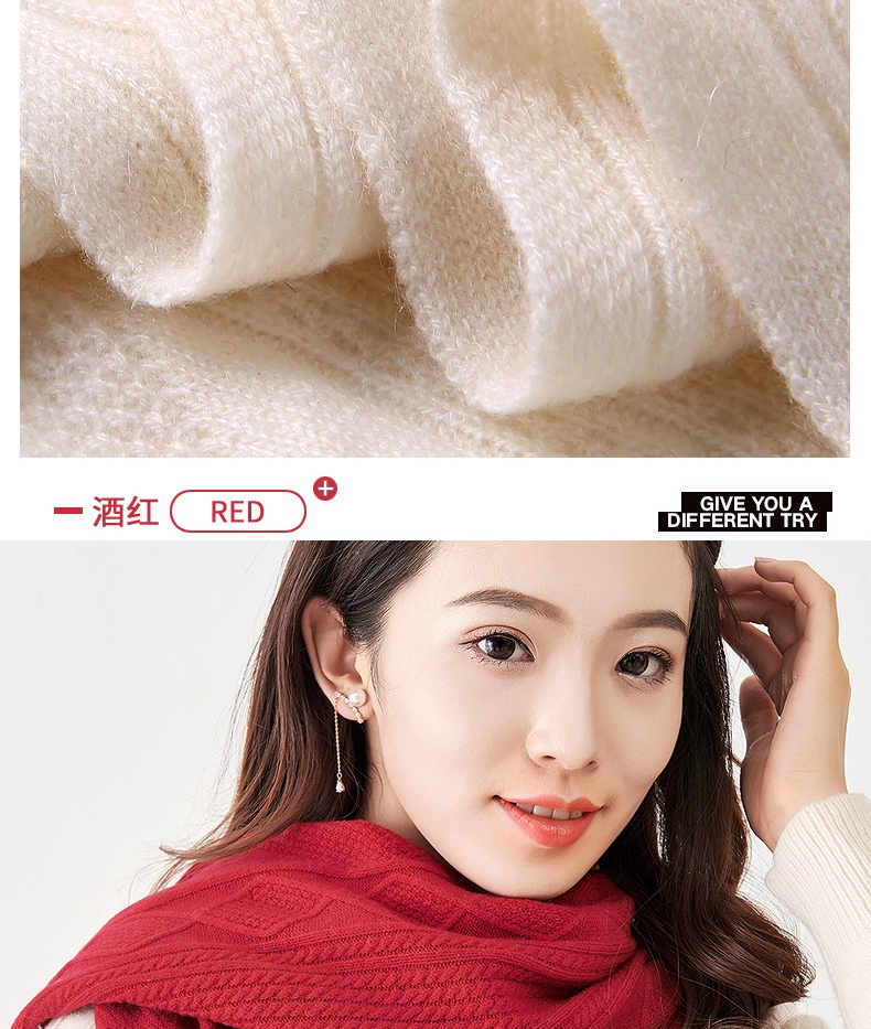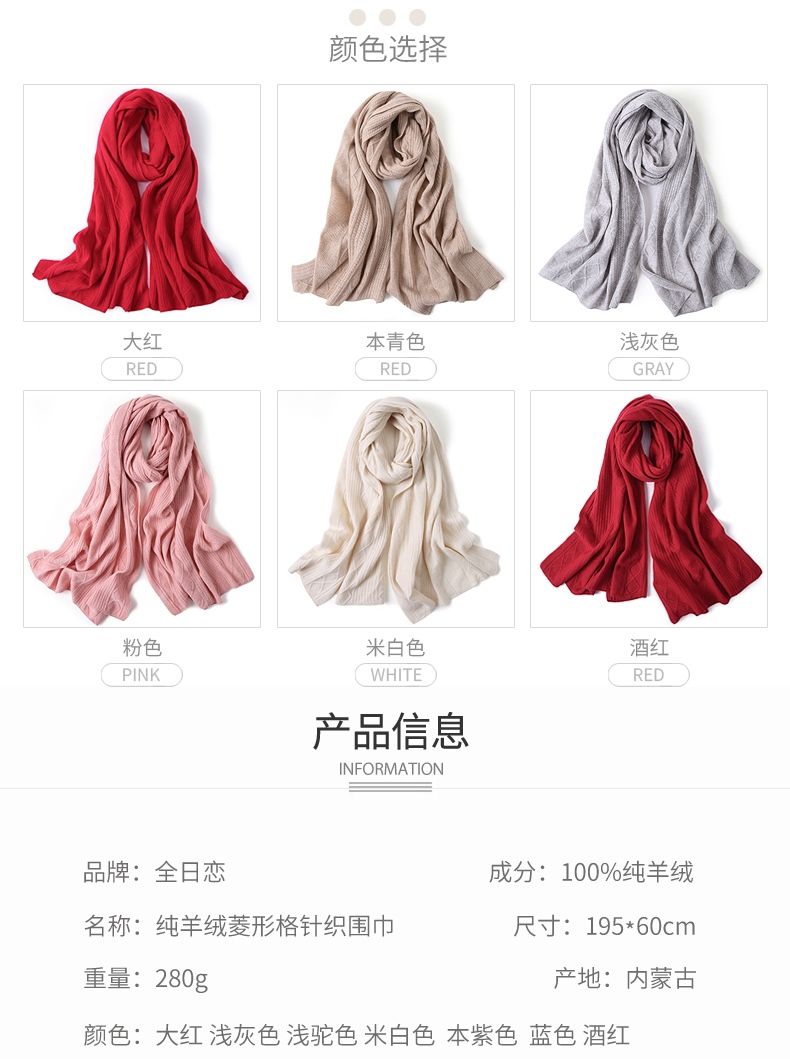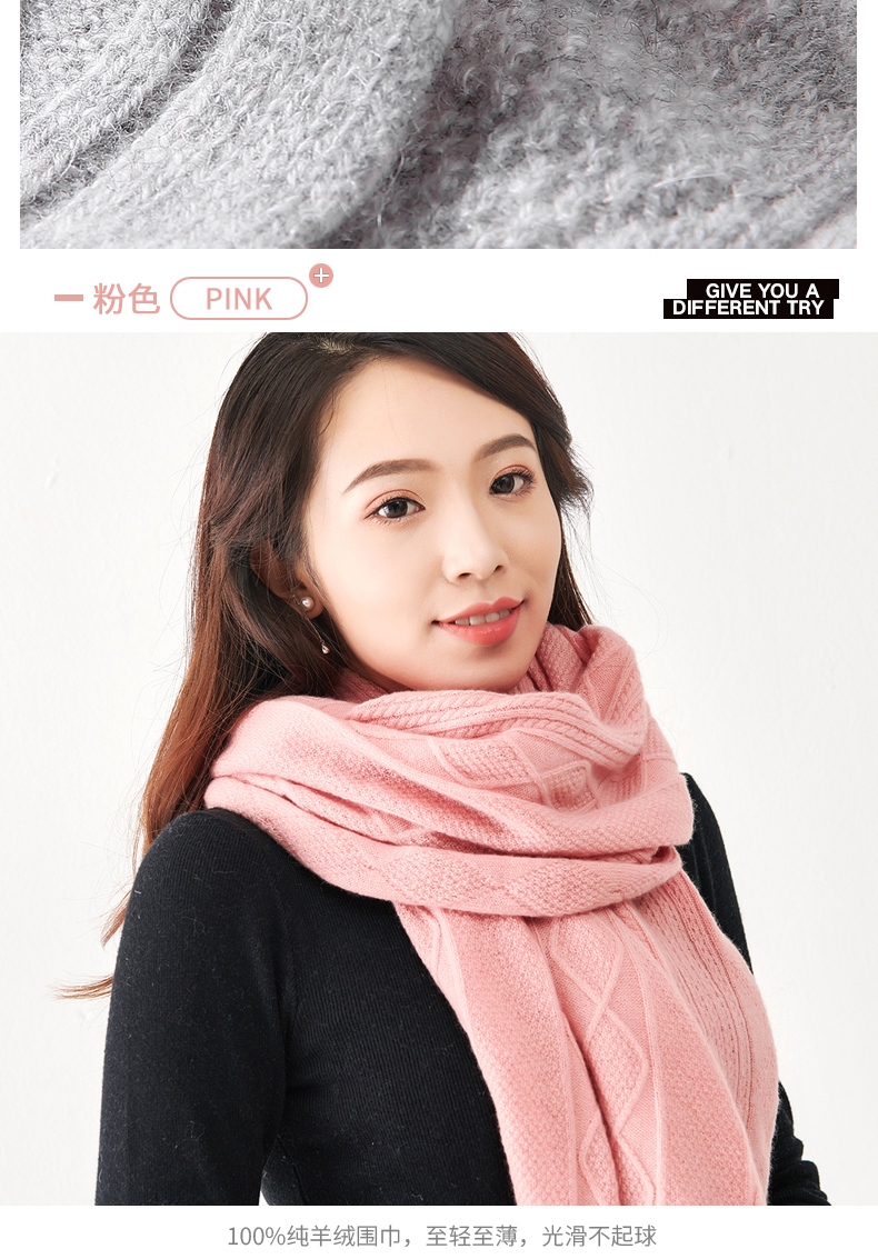 纯色山羊绒围巾女冬季本命年大红羊绒针织围巾披肩加厚保暖围脖