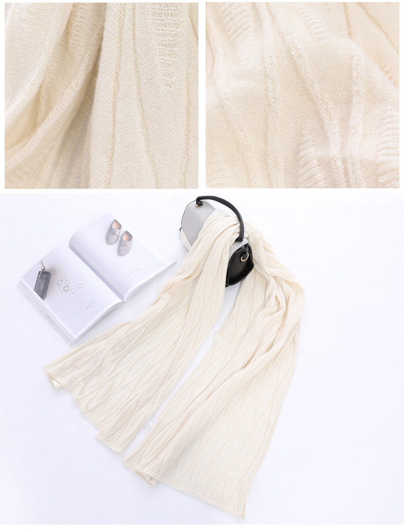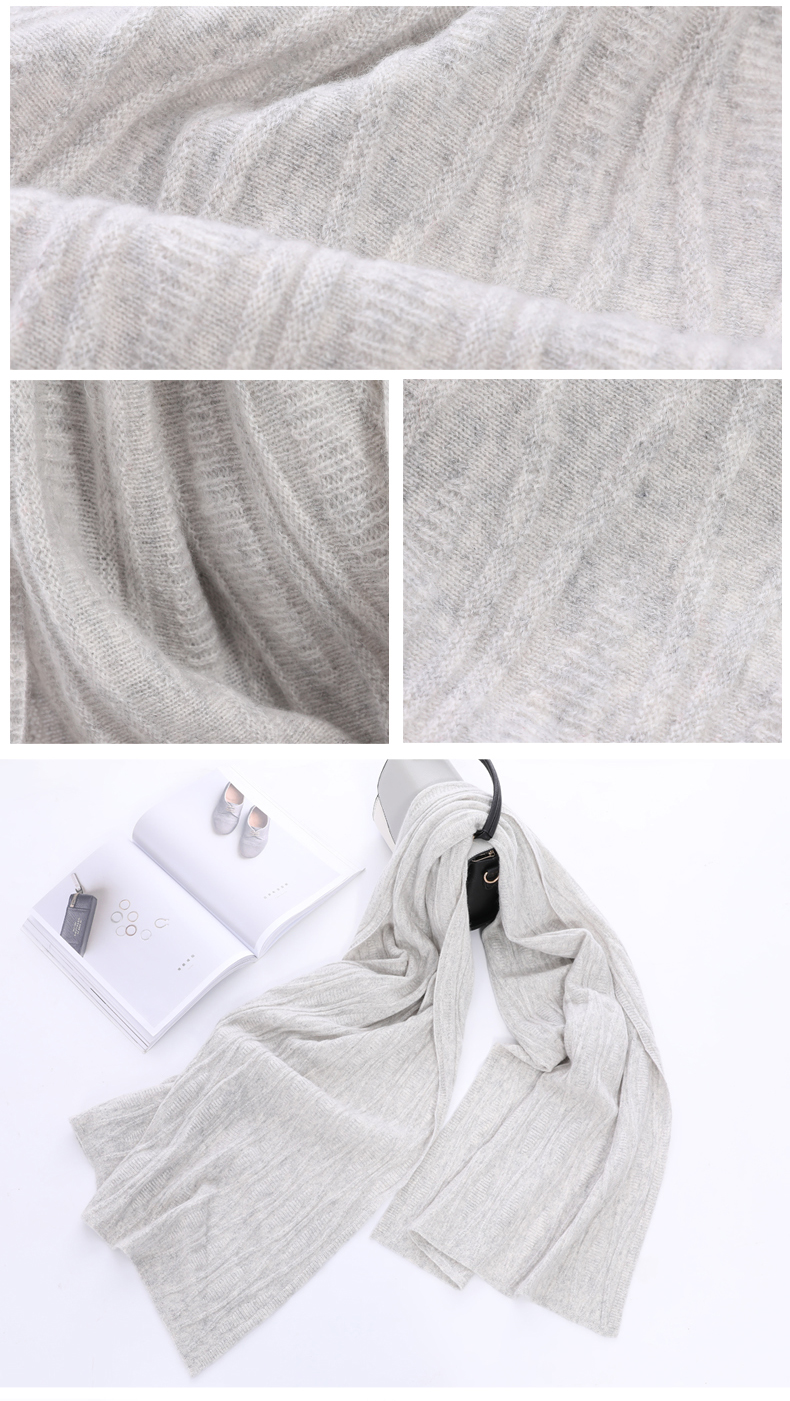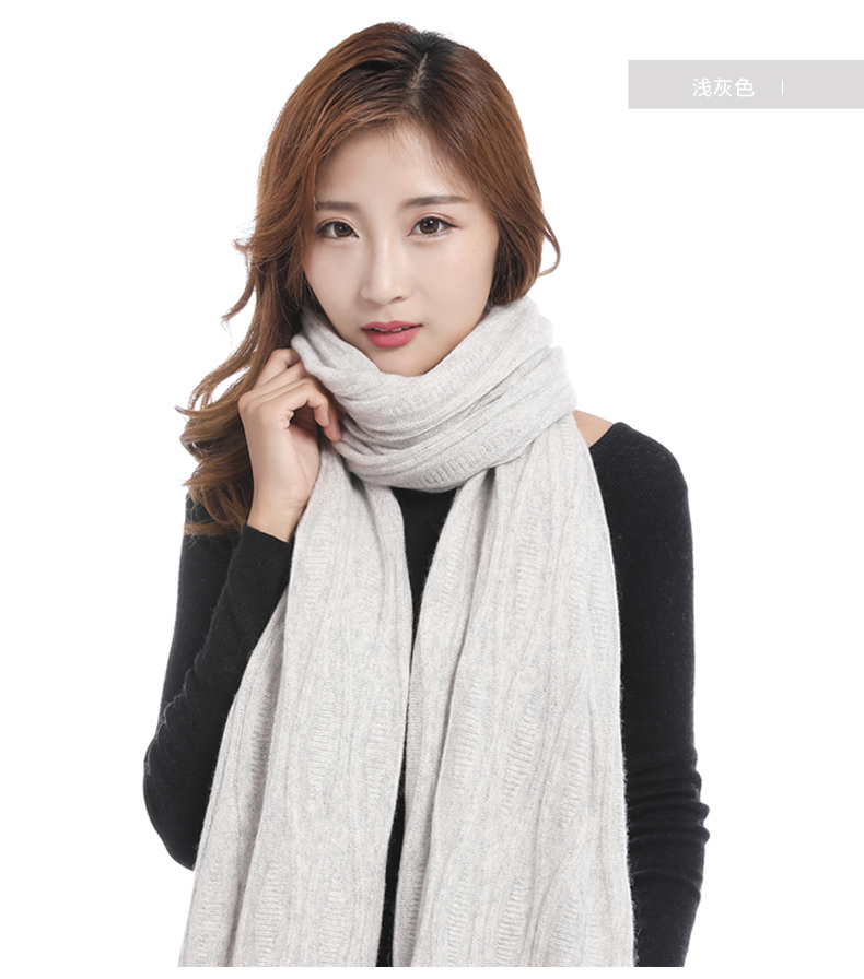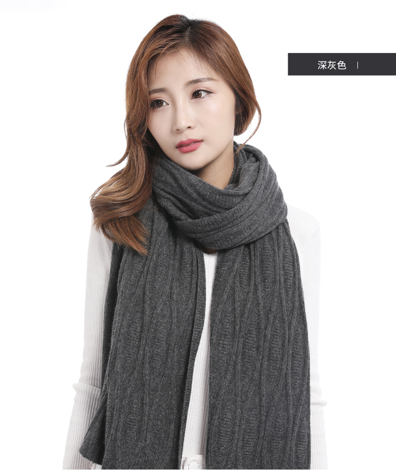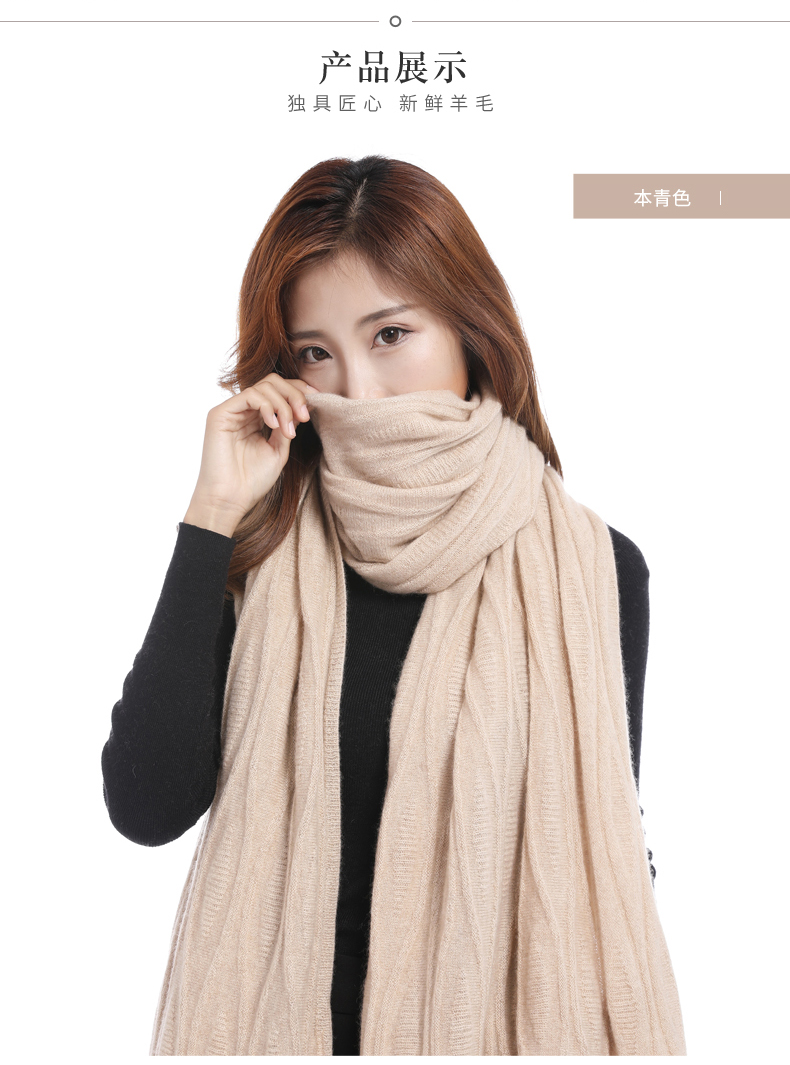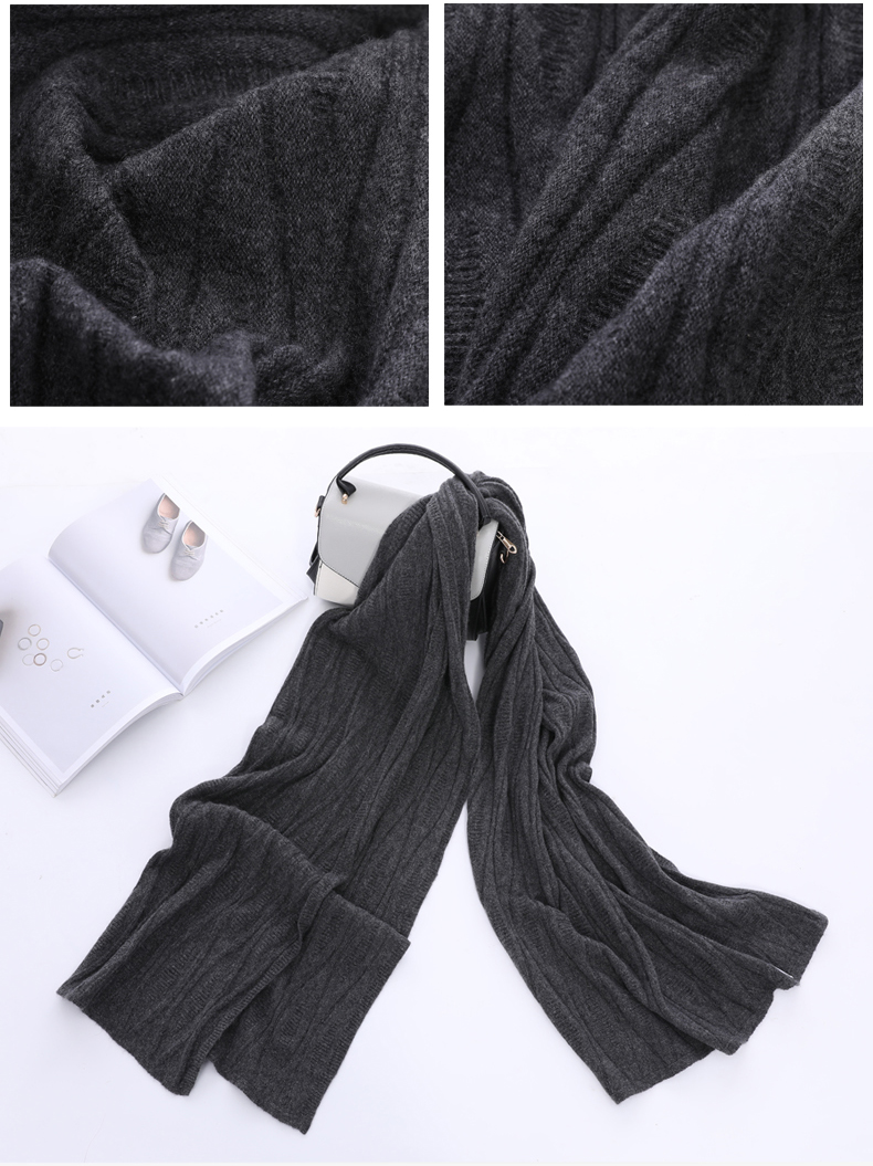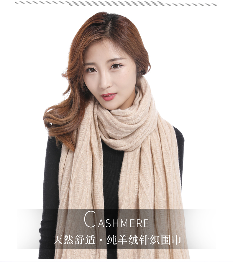 冬季新款针织羊绒女士围巾薄款欧美时尚纯色保暖长款围脖披肩礼品