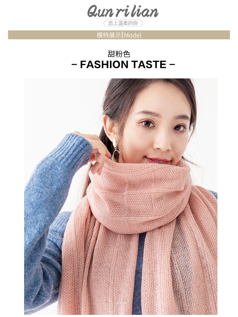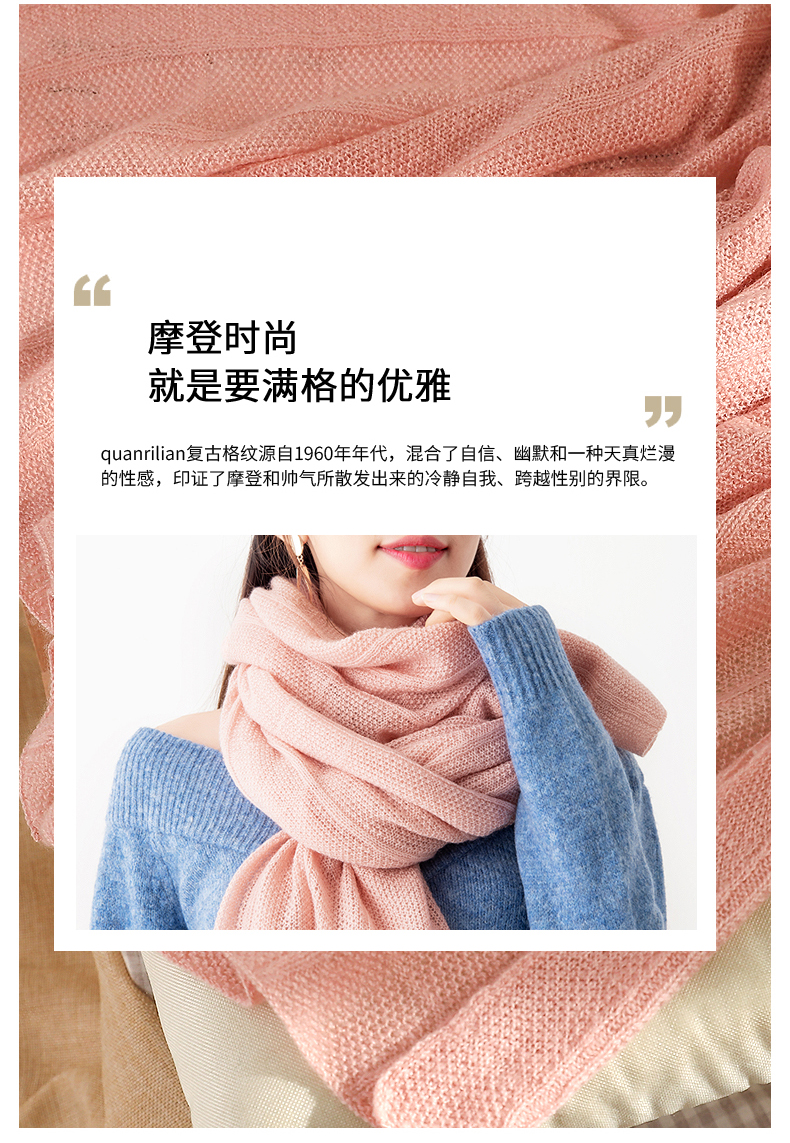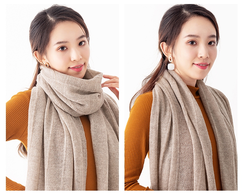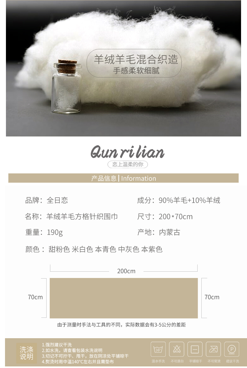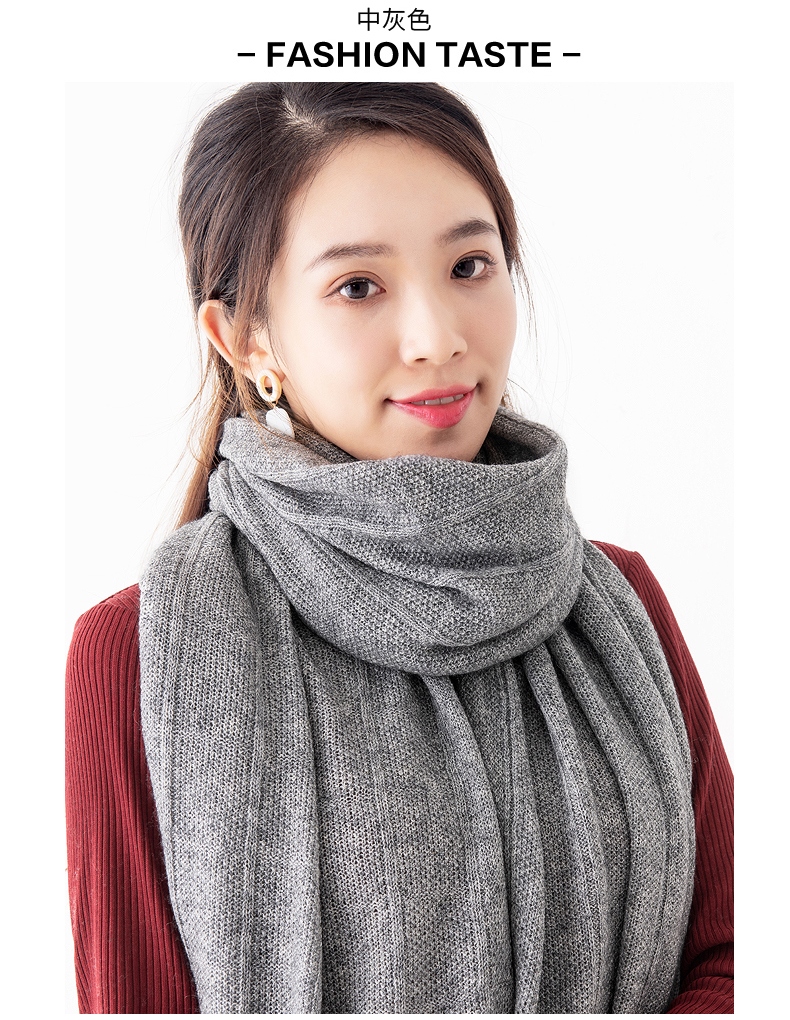 羊毛方格子围巾女冬季高档羊绒男女通用纯色针织羊毛围脖百搭披肩